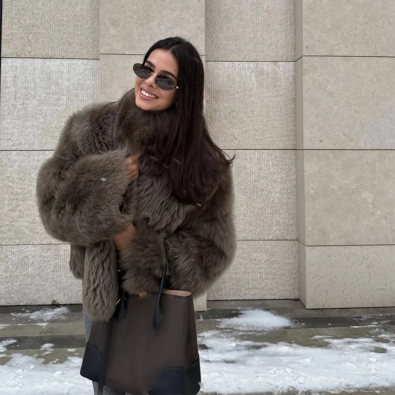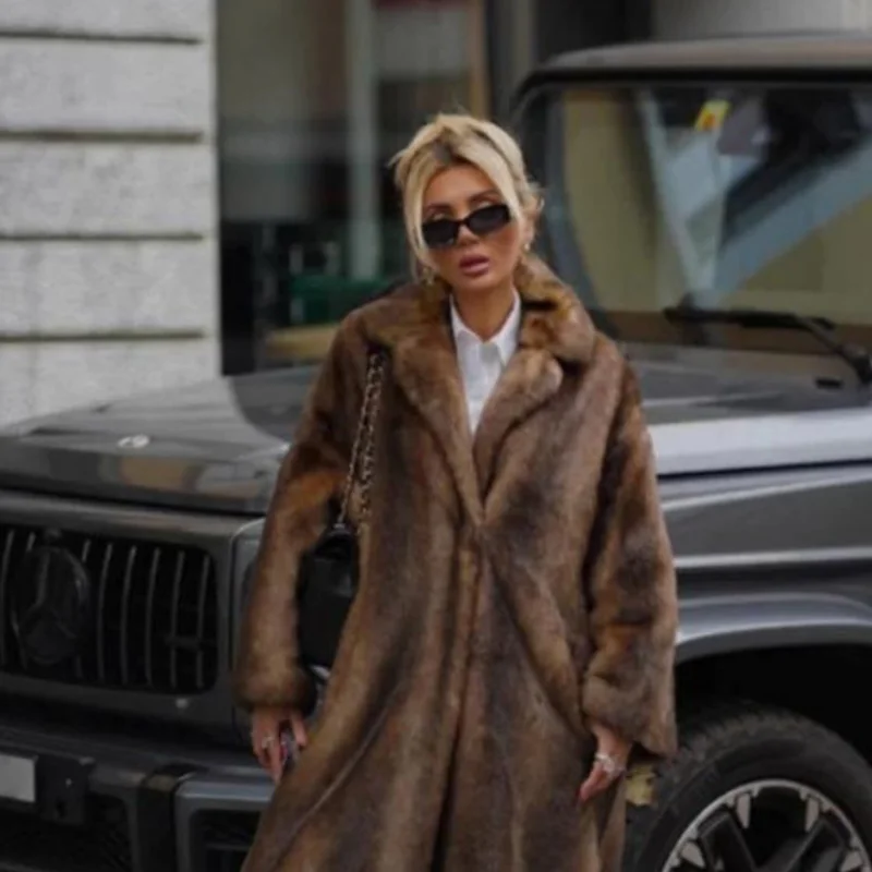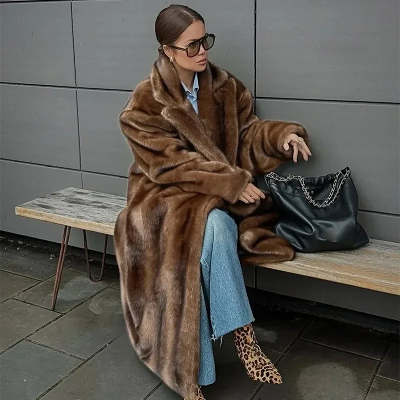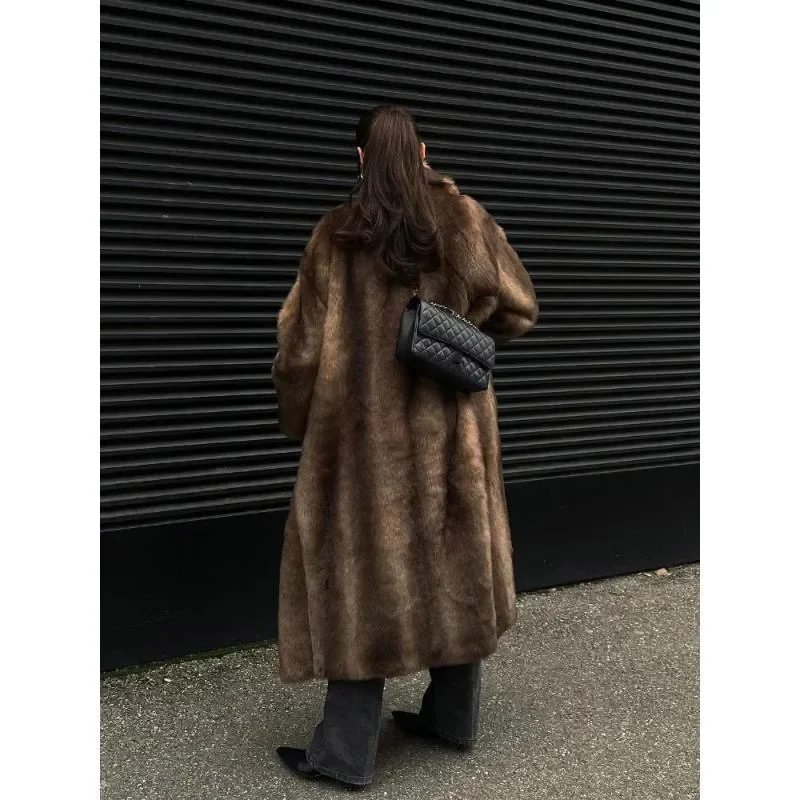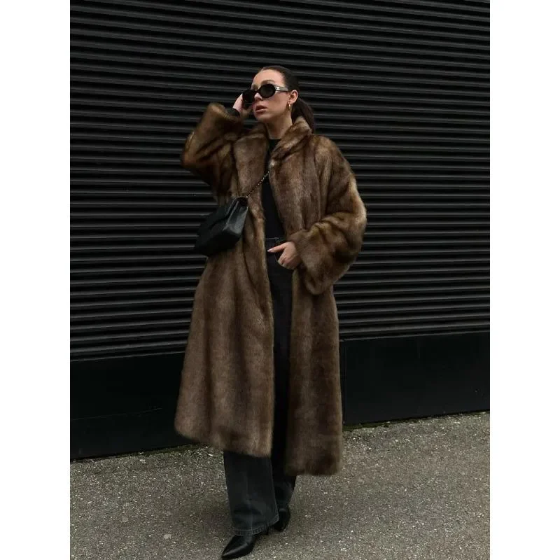 Luxury Faux Fur Long Coat Women 2025 Fashion Winter Plush Warm Jackets Full Sleeve Loose Fit Elegant High Street Overcoats
